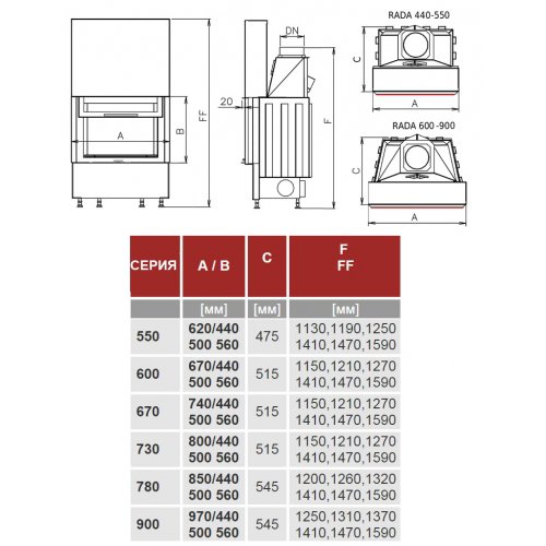 - Диаметр дымохода 200 мм