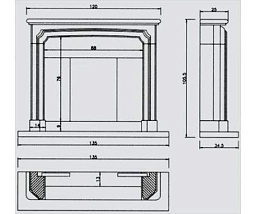 Декоративный камин из мрамора выполнен в стиле классика. Боковые стороны декорированы рельефными колоннами.